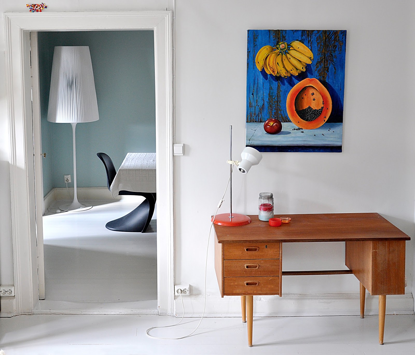 Lampa er en story for seg, kjøpte den for snart to år siden på Kremmerhuset i Sverige. Den hadde ingen prislapp, og de bedyret at det var en rekvisitt til utstillingen som ikke var for salg. Etter litt om og men fant de ut at utstillingen skulle byttes ut uken etter og at jeg kunne få kjøpe den da. Stolt som en hane hentet jeg min